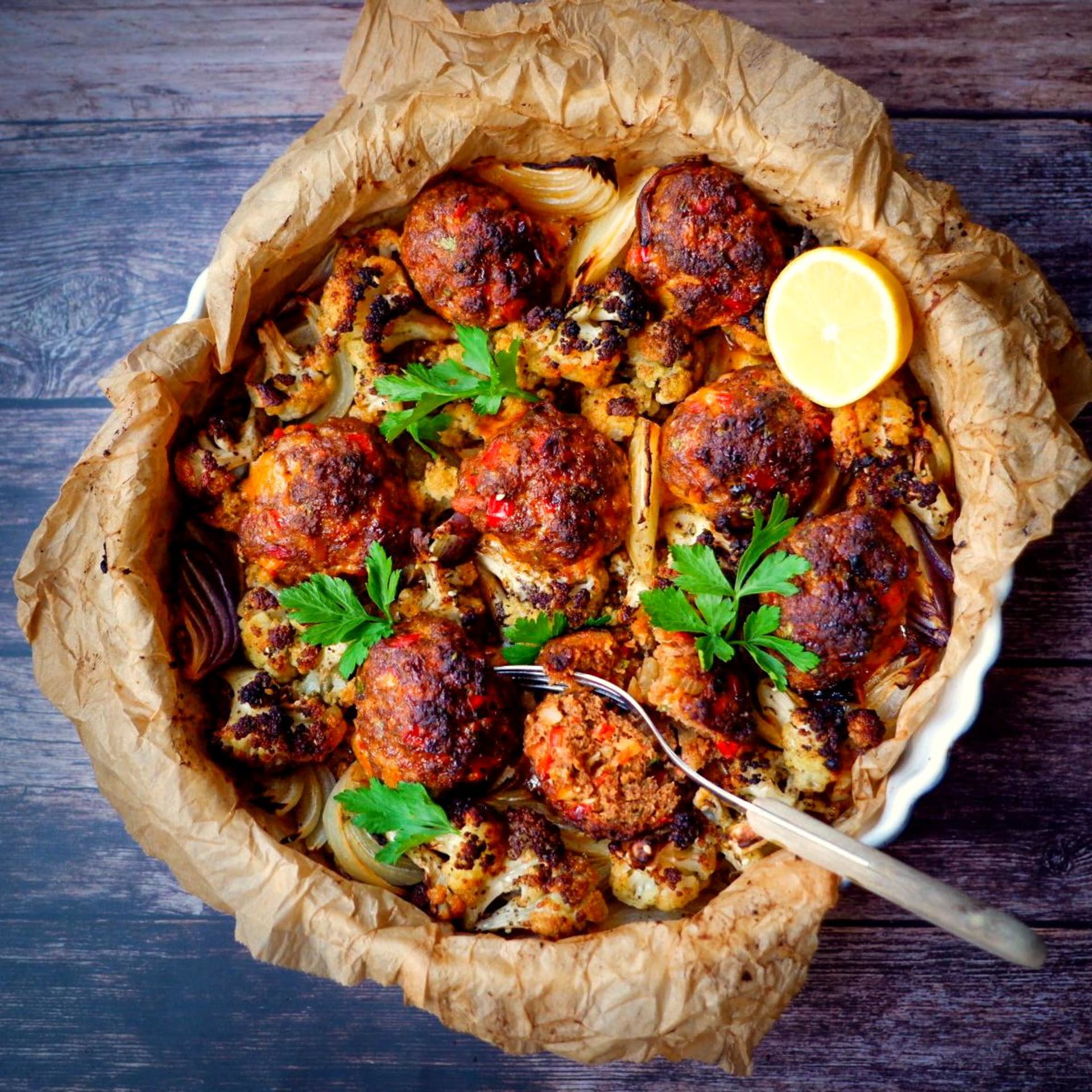 Pečené masové koule jsou skvělá a rychlá večeře, kterou můžete snadno obměňovat. Dají se totiž dochutit různým kořením, lze do nich přidat zeleninu nebo luštěniny, zkrátka pokaždé je můžete připravit trochu jinak. Dnes nabízíme variantu balkánskou, s voňavým kořením čubrica a paprikovou čalamádou. Jako přílohu můžete přímo s masem upéct třeba květák, je to trochu nevšední, ale moc dobré!