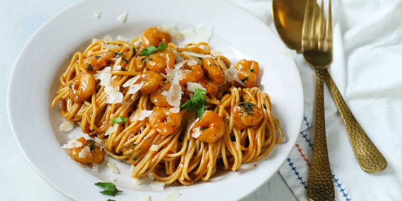 Rychlá večeře: Krémové pikantní špagety s krevetami