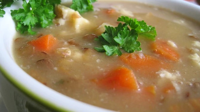 Suroviny pro 4 porce 1 hrnek čočky 1 mrkev 1/2 petržele 1 brambora 1 vejce sůl (podle chuti) mletý pepř (podle chuti) 3 stroužky česneku ocet (dle chuti) 2 lžíce másla 3 lžíce hladké mouky 1,5 litru vody Postup přípravy