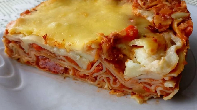 Suroviny 1 balení lasagní 500 g mletého hovězího masa 400 g loupaných rajčat v konzervě 70 g rajčatového protlaku 1 cibule česnek oregano bazalka tymián sladká paprika worcester olej sůl pepř 200 g strouhaného sýra Bešamel: 50 g másla 50 g hladké mouky 500 ml mléka sůl muškátový oříšek Postup přípravy