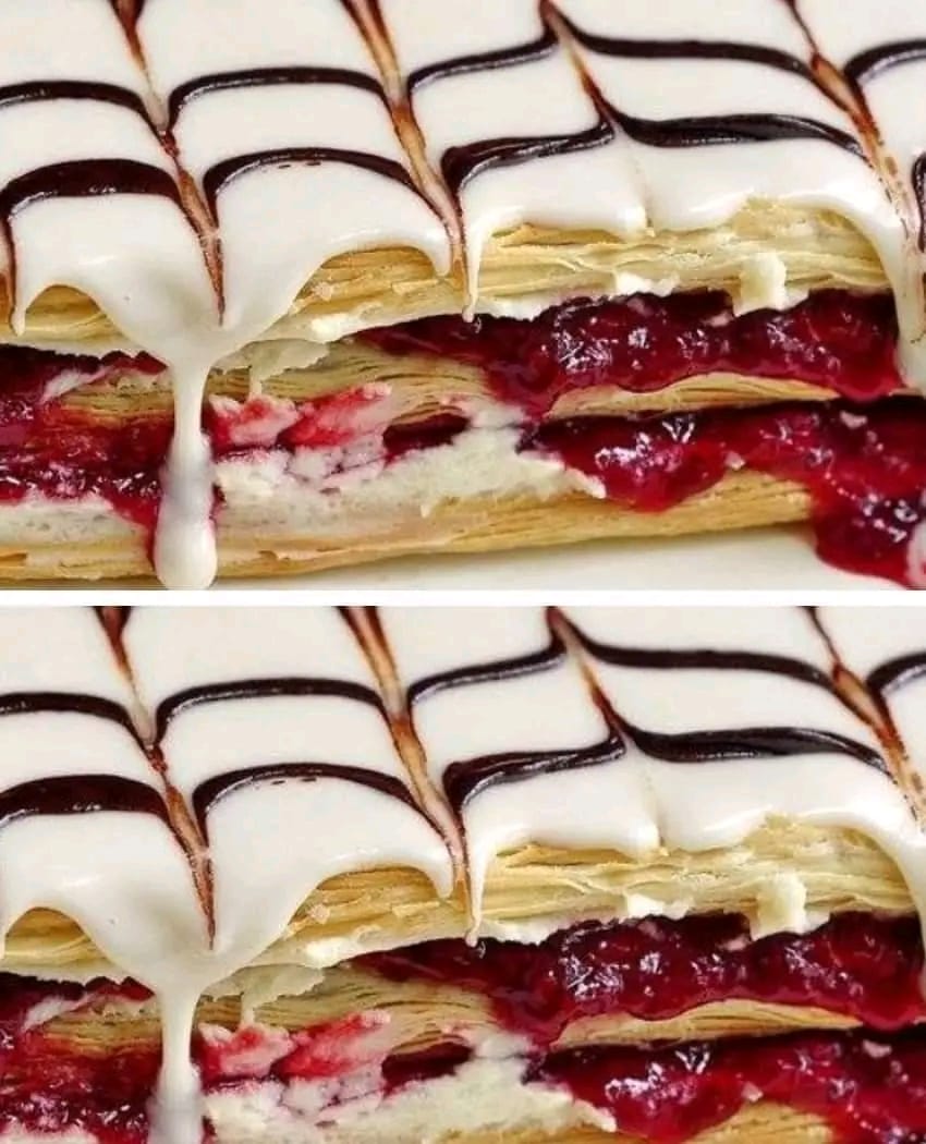 Mille-feuille, což znamená “tisíc vrstev”, je klasický francouzský dezert, který kombinuje křupavé listové těsto, hedvábný vanilkový krém a sladkokyselou malinovou náplň, zakončenou dokonalou polevou. Pravá pochoutka pro mlsné jazýčky! ✨ Ingredience (na 6-8 porcí) ✔ Pro listové těsto: 3 pláty listového těsta 1 ks vejce (na potření) 1 lžíce moučkového cukru ✔ Pro náplň: 250 … Read more