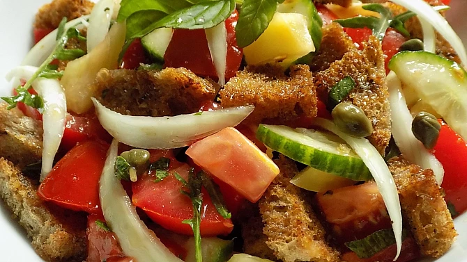 Salát s krutonky z tmavého chleba opečenými na olivovém oleji a ochucenými bazalkou zdvihne běžný salát o několik stupínků výše k chuťovému nebi. A přidáte-li do hotového pokrmu i aromatické kapary, úspěch u strávníků je zaručen!