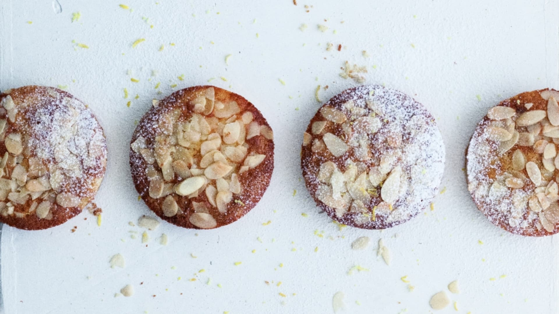 Výtečné nadýchané koláčky se svěží příchutí citronu a křupavými mandlovými lupínky jsou skvělé jako pohoštění ke kávě či čaji, ale hodí se i jako sladká snídaně.