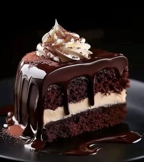 Bohaté čokoládové dortové vrstvy plněné vláčným karamelem, posypané lahodnou ganache, křupavými mandlemi a kokosovými vločkami.