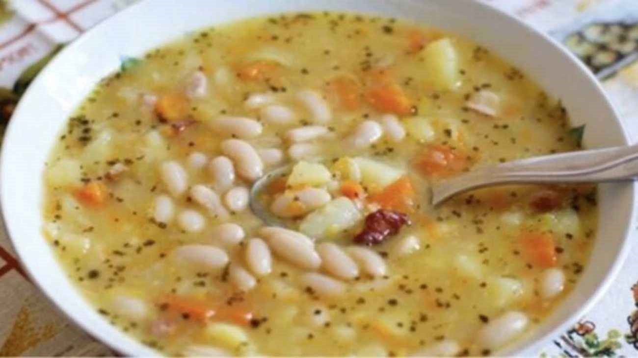 Tradiční fazolová polévka od babičky: namočené fazole, zelenina, trocha rýže a světlá zápražka. Přesné ingredience, postup krok za krokem, časy a počet porcí. Skvělá na oběd i večeři.