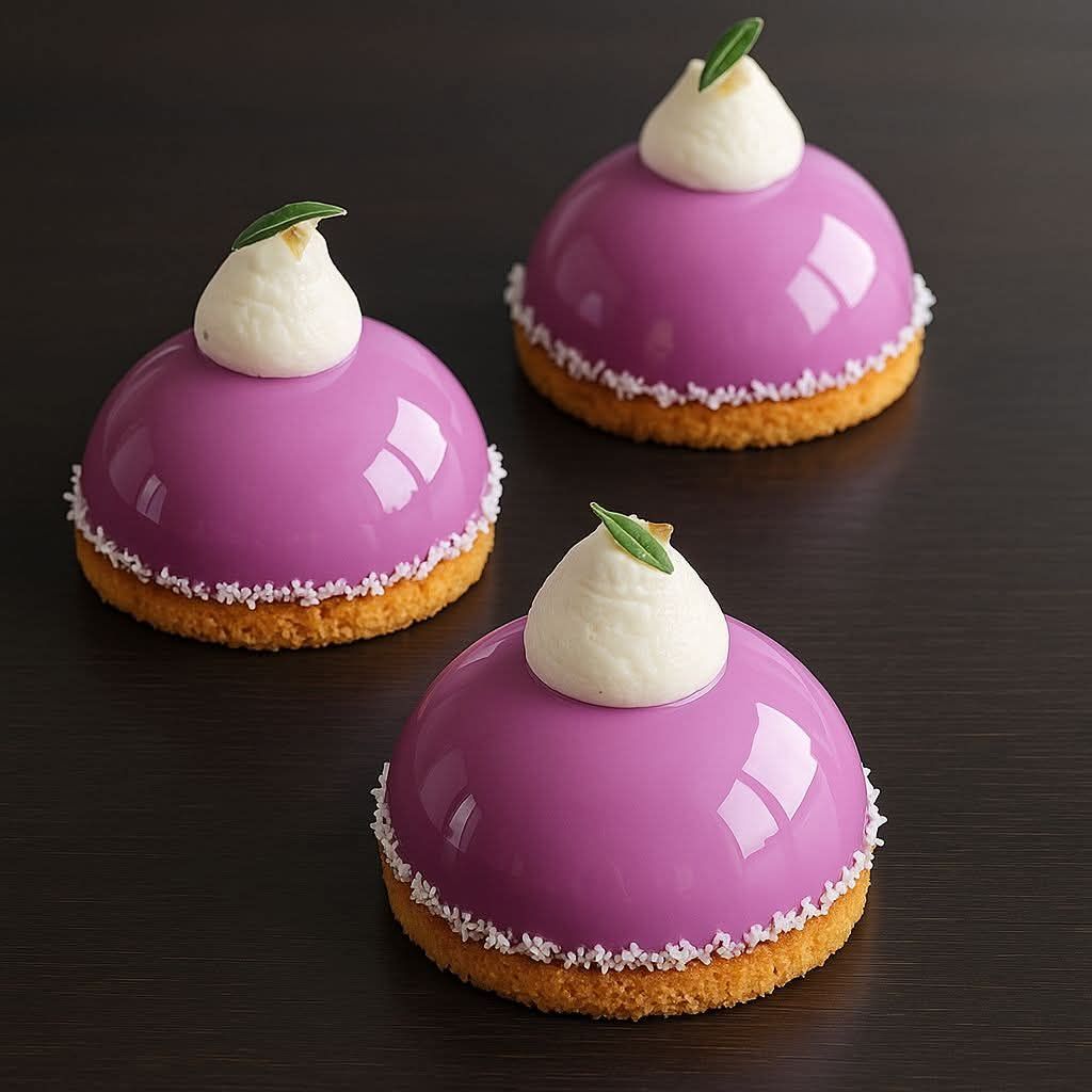 Fialová malinová pěna s sušenkovo-kokosovým základem