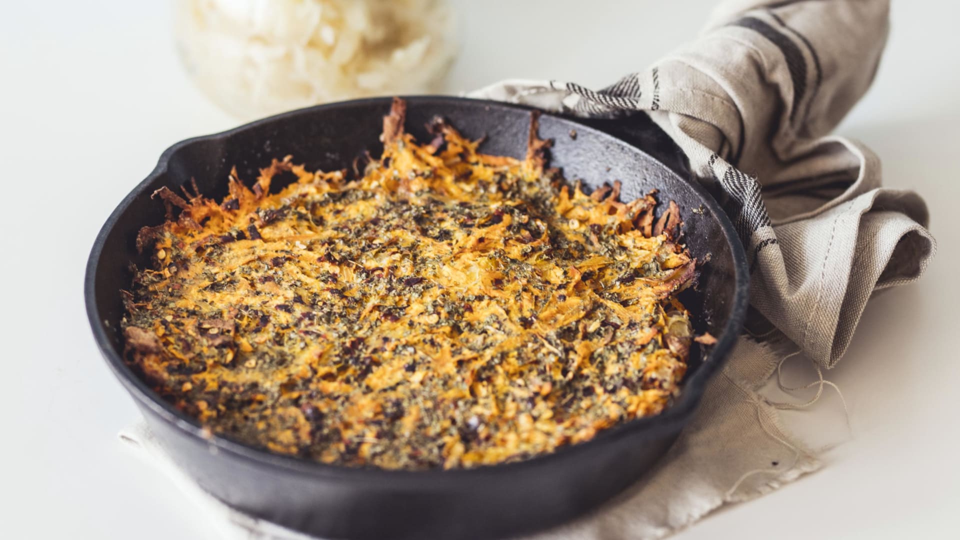 Gratinované batáty s kysaným zelím a chilli