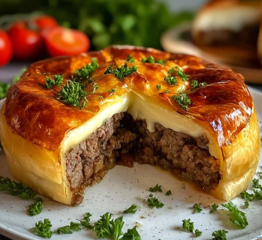 Hovězí koláč s kamembertem a mletým hovězím masem