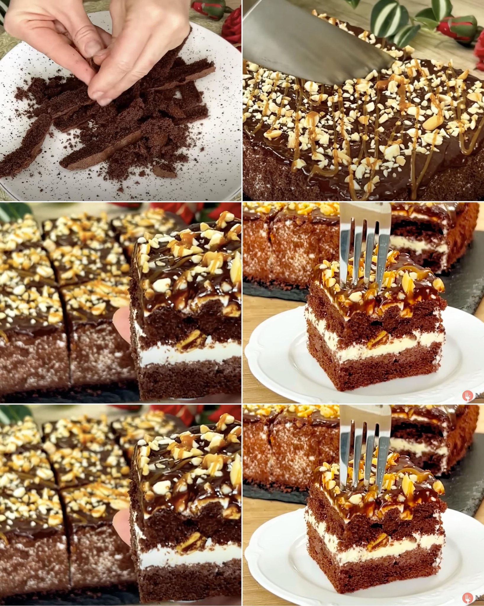 Tyto čokoládové řezy budete mít hotové téměř okamžitě. Nevyžadují žádné speciální zdobení – postačí vám jen čokoládová poleva a nasekané ořechy. Já jsem kromě toho použila i karamelový topping, který celému dezertu dodal správné zakončení. Pokud tedy hledáte něco chutného, jednoduchého a rychlého, určitě vyzkoušejte tento recept.