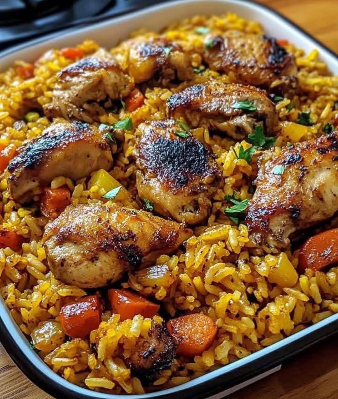 Připravte se na chuťovou cestu pod karibským sluncem s tímto slaným a aromatickým pokrmem z kuřete a rýže!