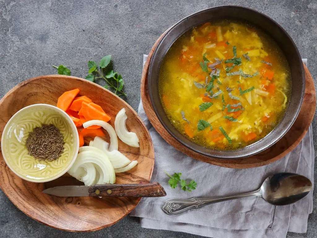 Kmín je voňavé koření, po kterém budete mít v břiše jako v pokojíčku. Vyzkoušejte rychlou a levnou, krásně provoněnou polévku s kořenovou zeleninou a úplně jednoduchou zavářkou z vejce a krupičky.