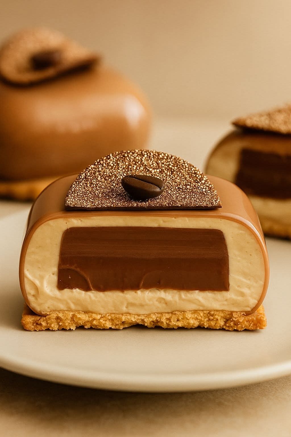 Koláč s kávovou a čokoládovou zrcadlovou glazurou