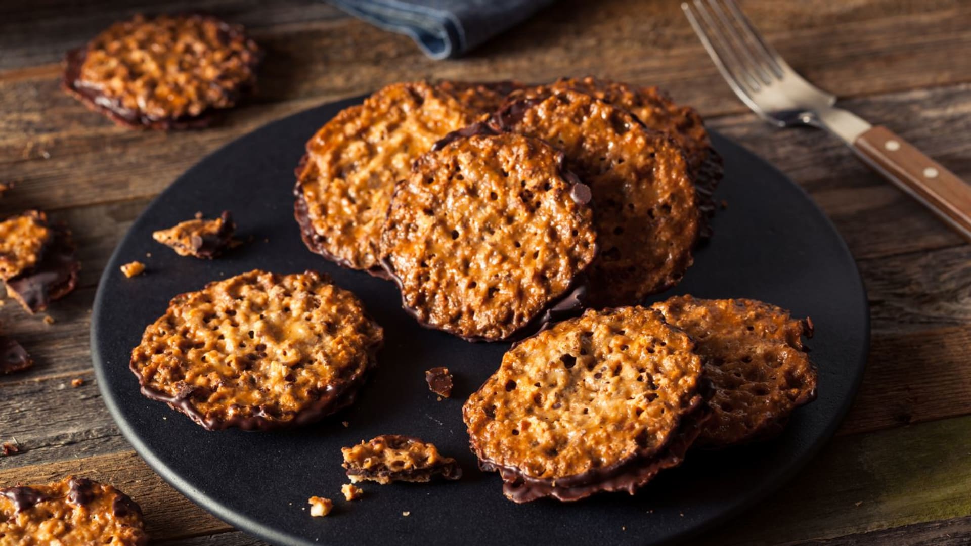 Tyto extra křupavé sendvičové sušenky připomínají průhlednou krajku. Připravují se z mandlí nebo jiných ořechů dle vašich preferencí a plní se rozpuštěnou čokoládou.