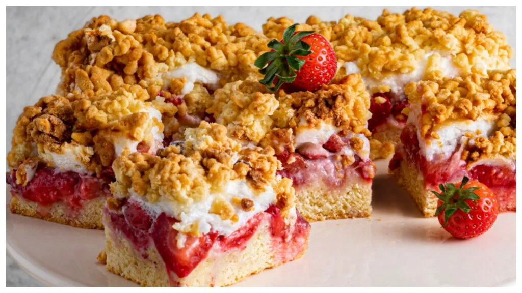 Tento křehký jahodový koláč s drobenkou je vynikající volbou pro milovníky jemných a šťavnatých dezertů. Díky kombinaci svěžích jahod, jemného krému a křupavého těsta je tento koláč ideální pro letní období.