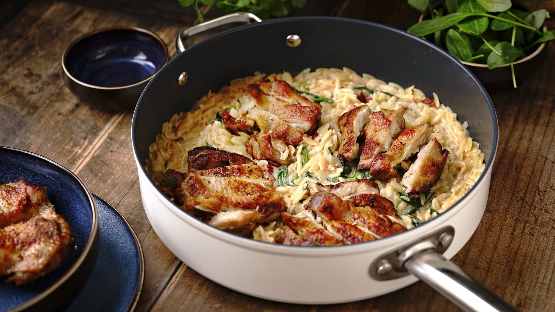 Kuřecí steaky s orzem, špenátem a sušenými rajčaty jsou lahodným spojením šťavnatého masa a krémové omáčky. Tento recept nabízí vyváženou kombinaci chutí, která zasytí a zároveň potěší. Ideální volba pro rychlou, ale zároveň elegantní večeři, kterou zvládnete připravit za méně než hodinu.