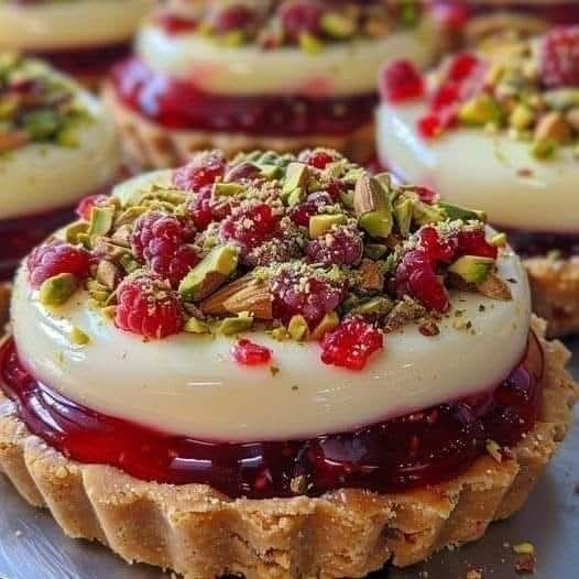 Miluji tyto malé kousky nebe! Tyto mini malinovo-pistáciové koláčky jsou přesně to, co váš den potřebuje!💖 💚