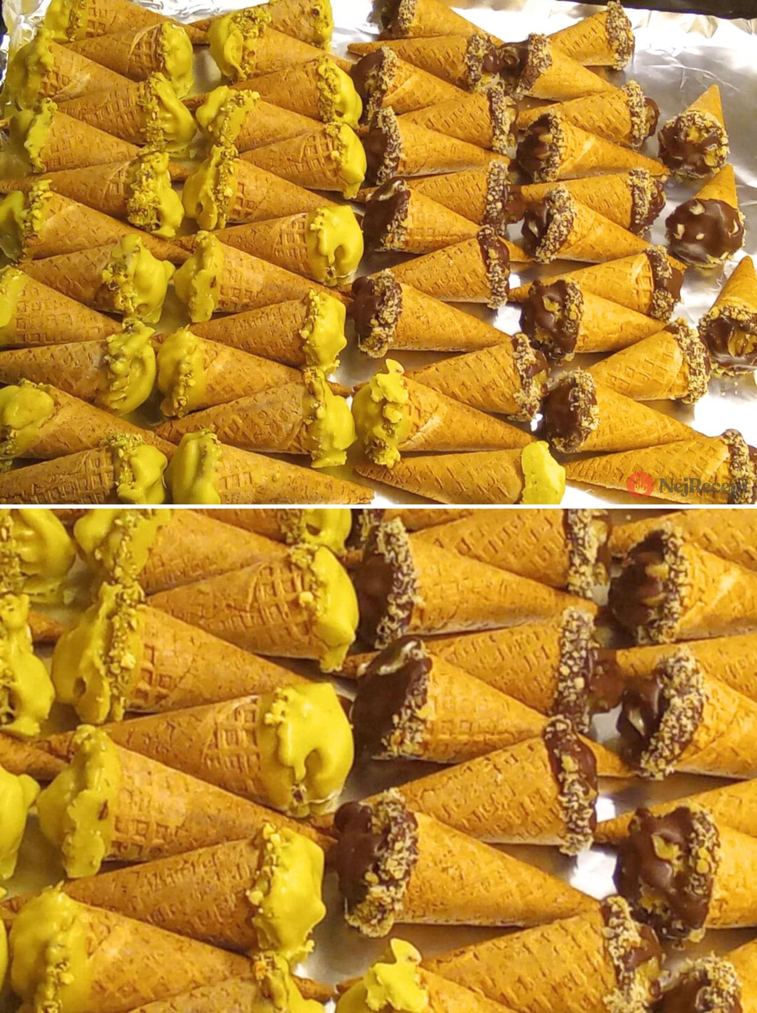 Jednoduché, chutné a velmi efektní. Přesně takové jsou tyto kornoutky plněné máslovo-ořechovým a pistáciovým krémem. Pokud by vás ani jeden z krémů nezaujal, klidně můžete zvolit kakaový, vanilkový nebo jakýkoli jiný podle své chuti. Autor: Margita Markovičová