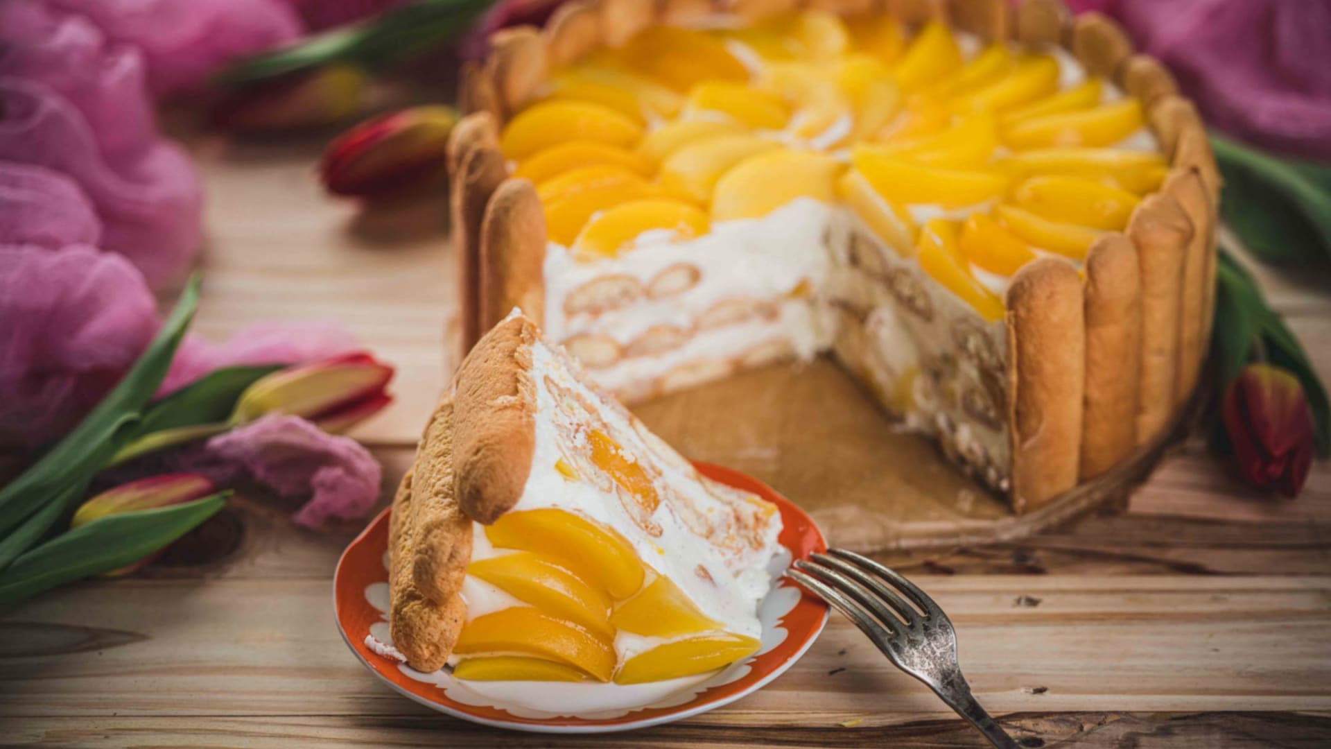 Venku už pomalu teploty stoupají, proto nastal čas připravit nepečený dort provoněný a proslazený ovocem. Aby byl opravdu jemný, přimíchali jsme k tvarohu také smetanu ke šlehání. Dort Malakov lemují piškoty namočené ve šťávě z broskví a v griotce. Ty jsme také použili na spodek dezertu a další vrstvení, kdy se střídají s nadýchanou tvarohovou směsí a šťavnatými broskvemi. Pokud toužíte po jiném ovoci, vyberte si podle vašeho přání.