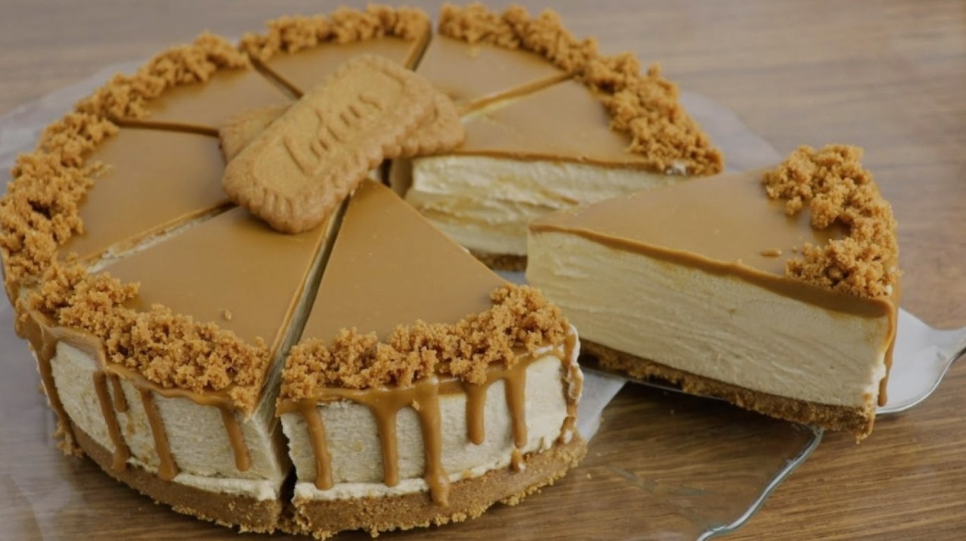 Ingredience Základ: 250 g karamelových sušenek (Lotus) 120 g másla Krém: 500 g jemného tvarohu 250 g mascarpone 250 ml rostlinné šlehačky 120 g moučkového cukru Karamel: 130 g krystalového cukru 70 g másla 100 ml smetany ke šlehání Postup přípravy