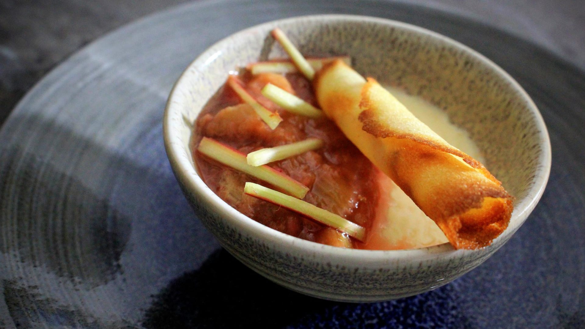 Pavel Berky připravil sezonní recept na lahodnou panna cottu s chuťově výrazným čatní z rebarbory, které doplňuje křupavá trubička. Ideální dezert po nedělním obědě.