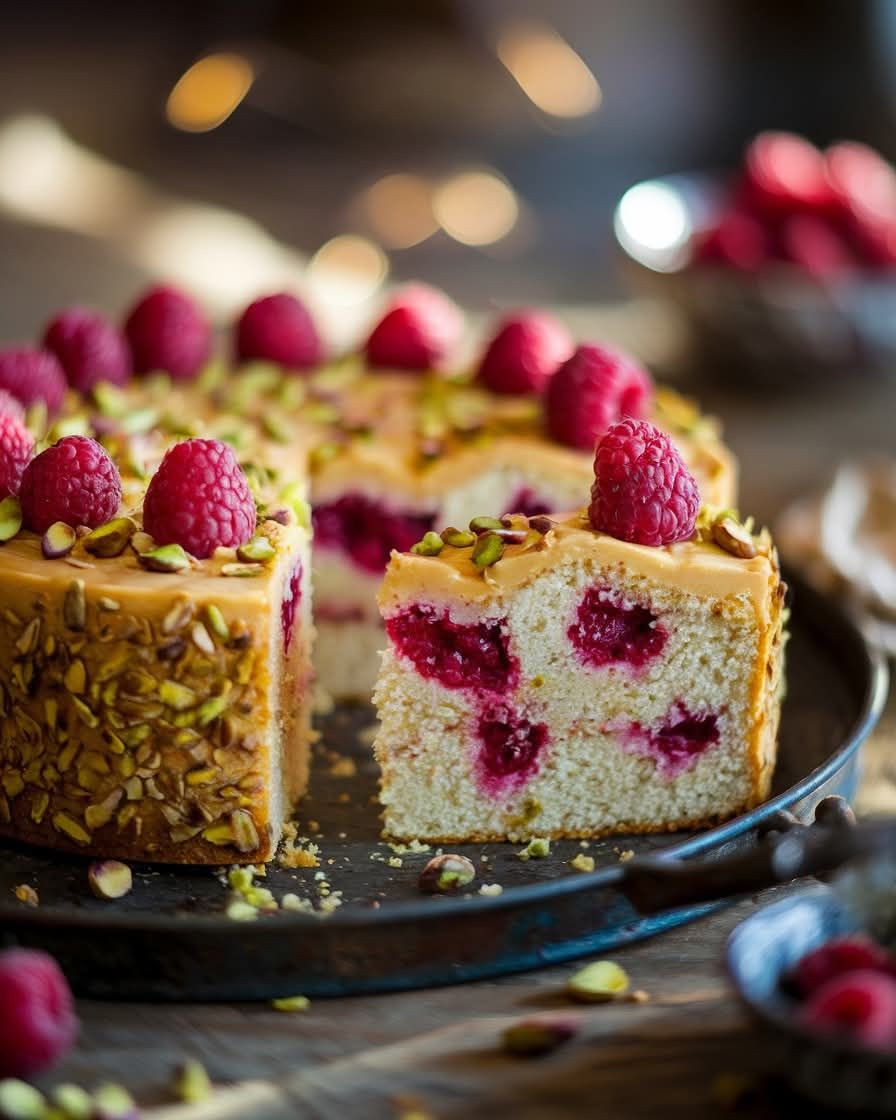 Pastel de Frambuesas y Pistachos 🍰✨