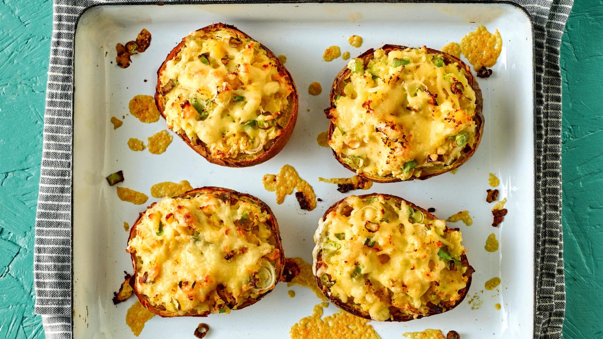 Pečené brambory Welsh Rarebit se sýrem a worcesterskou omáčkou
