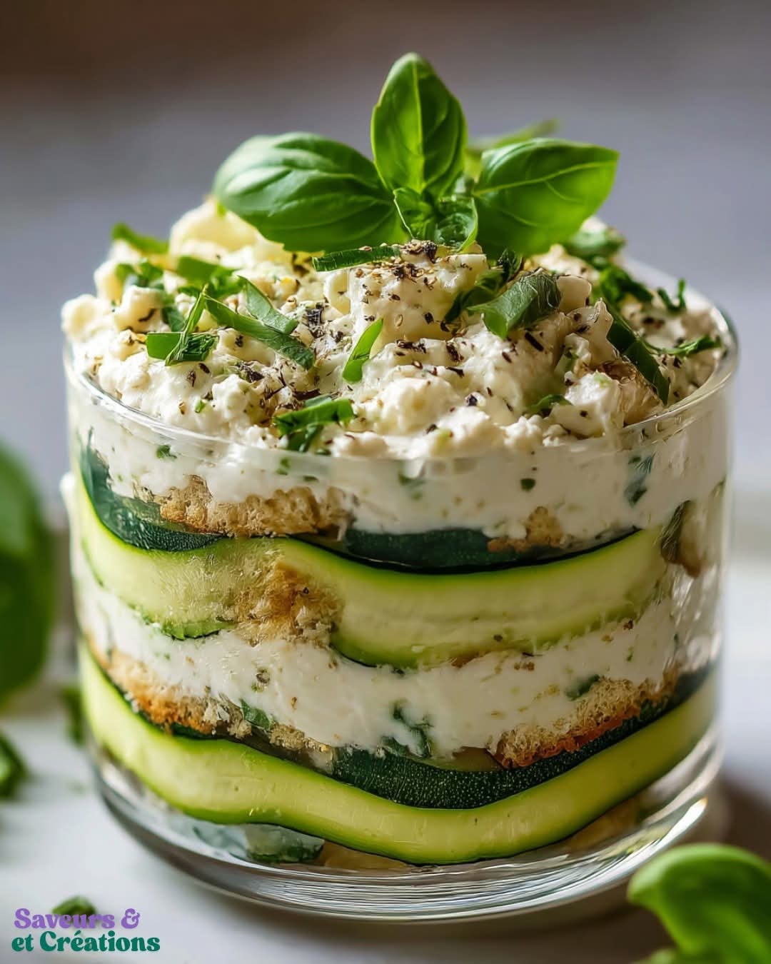 Oživte slavný italský dezert v slané a rostlinné verzi s tímto tiramisu, které je stejně překvapivé jako lahodné! Strouhaná cuketa, roztavená feta, krémové mascarpone a čerstvé bylinky se spojují v lehký a rafinovaný předkrm. Ideální pro brunche, pikniky nebo letní jídla bez tepelné úpravy 🌞
