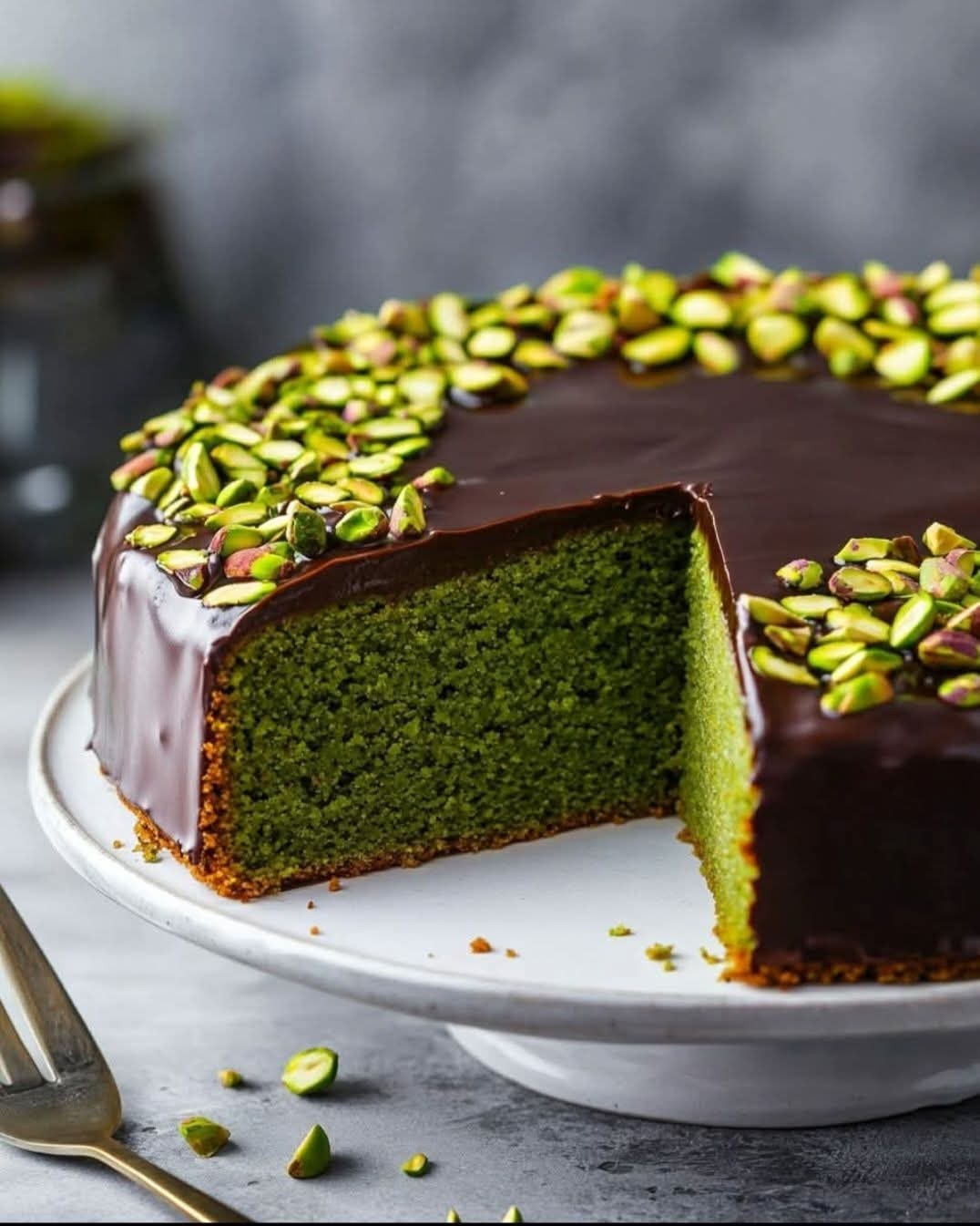 Pistáciový dort bez mouky s čokoládovou ganache 🍰🍫