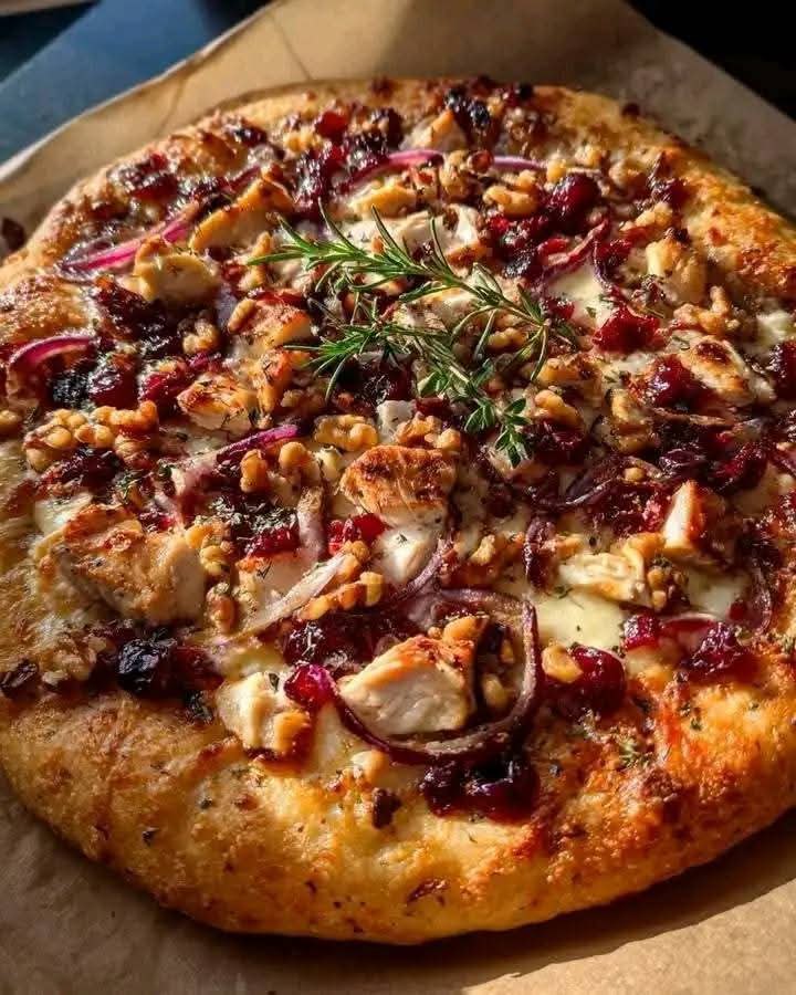 Pizza s brusinkami a kuřecím masem Brie