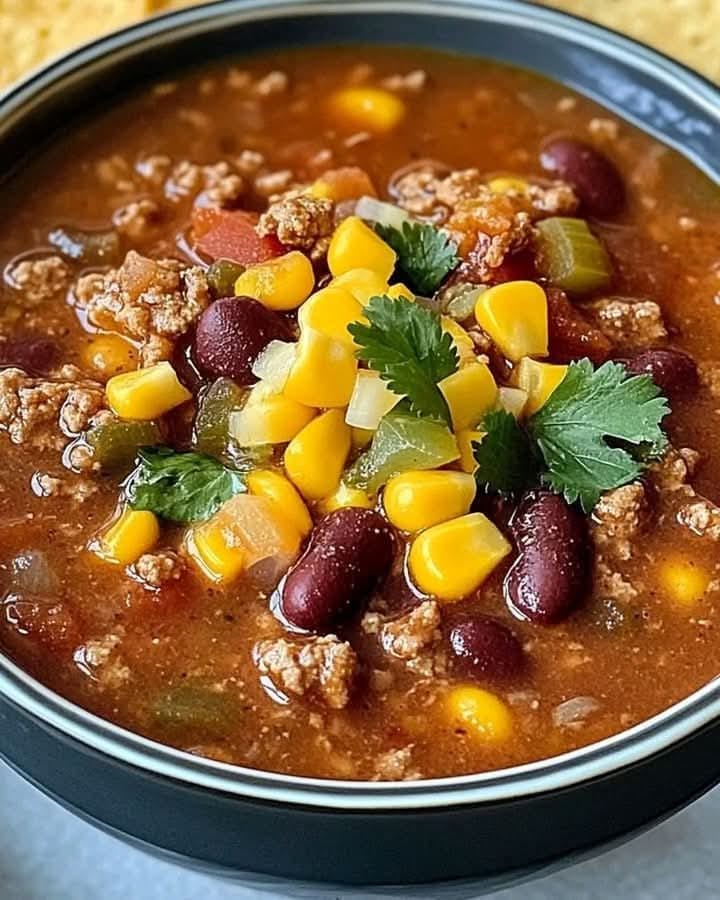Vydatná a chutná polévka, která kombinuje bohatost mletého hovězího masa s kořením na ranch a taco, ideální pro útulné večeře nebo setkání s přáteli a rodinou. Ingredience: