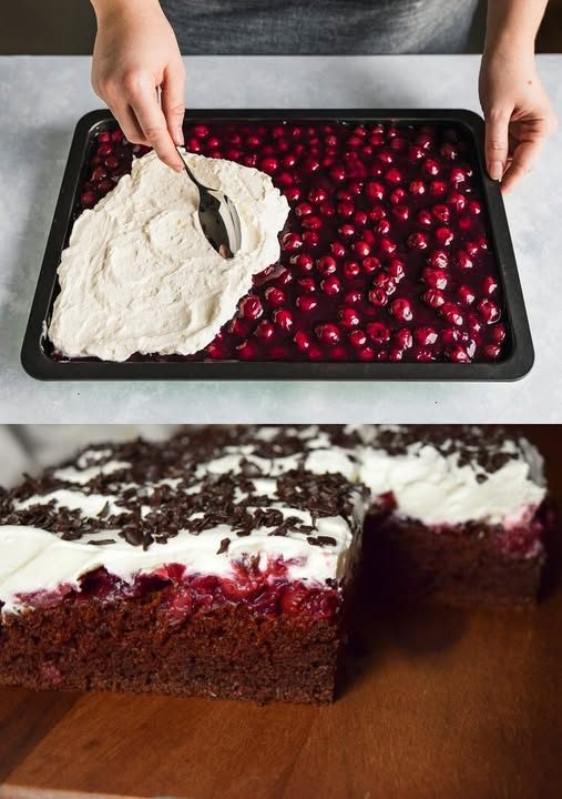 Tento Schwarzwaldský koláč se peče na plechu a spojuje jemný čokoládový korpus s osvěžujícími třešněmi a nadýchanou šlehačkou. Je to dokonalý dezert pro všechny milovníky čokolády.