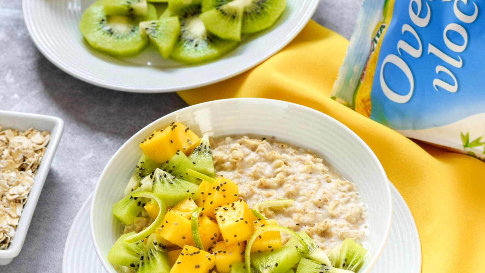 Nastartujte svůj den vyváženou snídaní. Ovesné vločky jsou dobrým zdrojem vlákniny a mají vysoký obsah vitamínů a minerálů, snižují hladinu cholesterolu a cukru v krvi. V kombinaci se skořicí a čerstvým ovocem je ovesná kaše dobrým společníkem k ranní kávě nebo také jako odpolední svačinka.