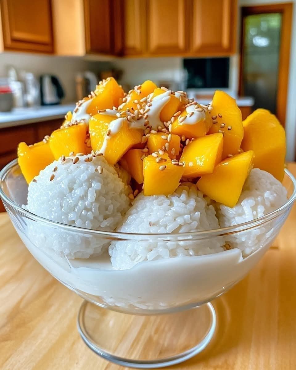 Unikátní směs thajské lepkavé rýže s mangem: Osvěžující a sladký zážitek! 🥭🍚🥥