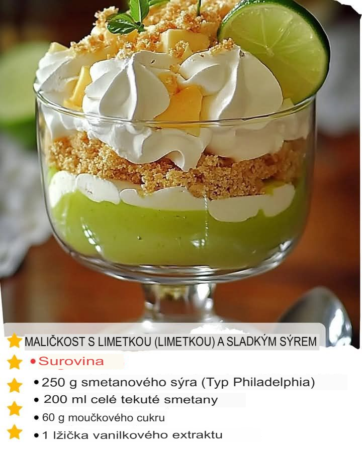 Tento dezert vás zaved e do světa svěžesti a jemnosti s nádechem limetky a krémového sýru. Připravte se na dokonalou harmonii křupavého korpusu, luxusního krémového náplně a žhavé limetkové vůně, která potěší každou chuťovou buňku.