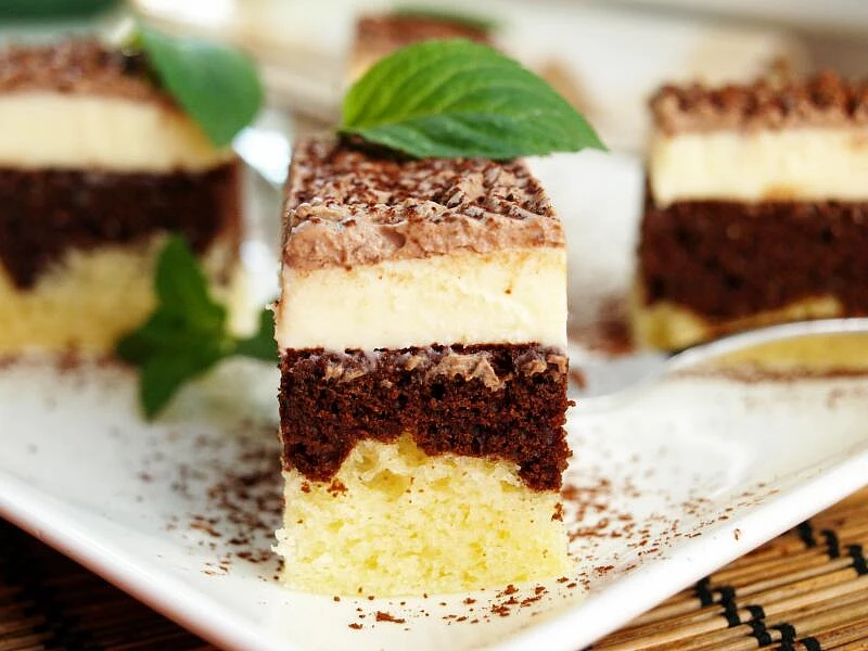 Rychlé a lahodné, přesně takové potřebujeme moučníky k nedělní kávě. Dvoubarevná buchta z jednoduchého olejového těsta je vláčná díky pudinkovému krému s tvarohem. Voní po rumu i kávě a politá je vrstvou čokolády se zakysanou smetanou.