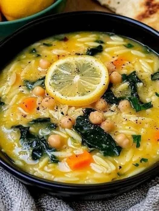 Veganská polévka Avgolemono (řecká citronová polévka s orzem)