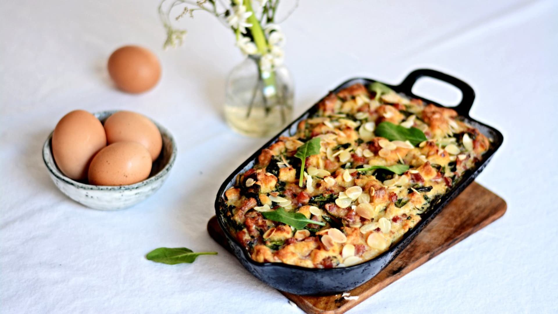 Nádivka s uzeným masem je tradiční velikonoční pokrm, do kterého patří spousta zeleného lupení včetně mladých výhonků kopřiv. Nakombinujte je s mladým špenátem, a pokud najdete, tak můžete přidat i nasekaný medvědí česnek.