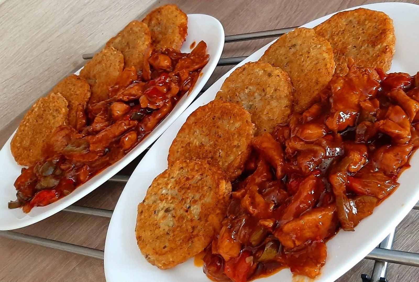 Vepřová kýta na nudličky s paprikou, okurkou a pikantní omáčkou recept