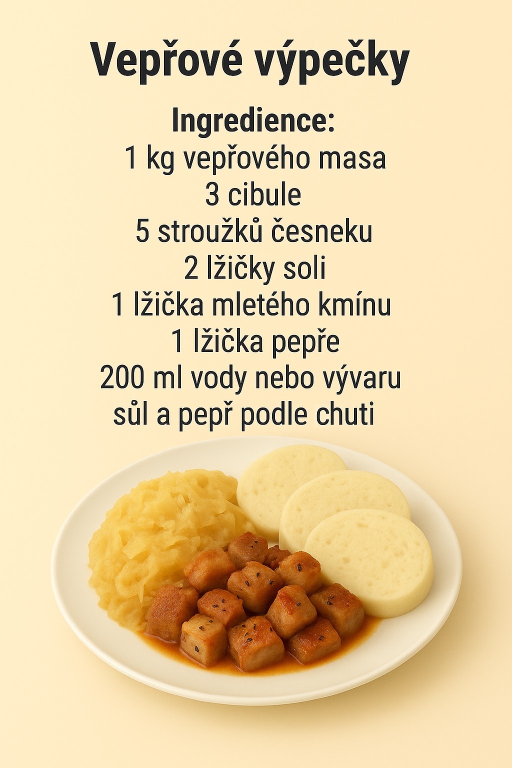 Vepřové výpečky é um prato tcheco e eslovaco incrivelmente simples, saboroso e reconfortante. Basicamente, são pedaços de carne de porco assada lentamente no forno até ficarem macios e a gordura se “purificar” (o termo výpečky vem de “gordura/óleo purificado”).