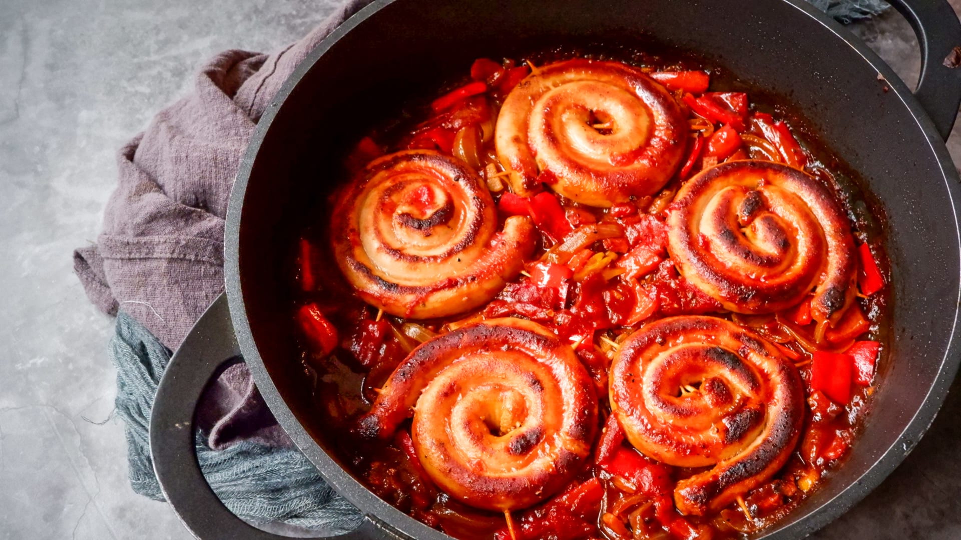 K orosenému žejdlíku se tahle chuťovka báječně hodí. Místo tradičních špekáčků zkuste zapéct navinulou vinnou klobásu se zeleninou a nasládlým černým pivem, které v troubě krásně zkaramelizuje.
