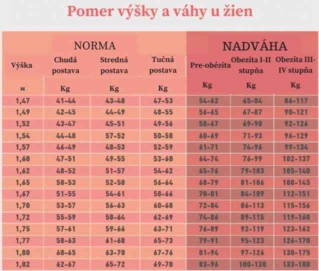 Mnoho žen každý den řeší trápení se svou váhou. Mnoho žen si myslí, že nemá ideální váhu, ale často zapomínají na to, že ideální váha je naprosto jiná k výšce ženy. Ideální váha nemůže platit pro všechny typy a výšky postav. Naštěstí tu máme tabulku, kde ženy mohou poměřit svou výšku s váhou a zjistit tak, zda je jejich váha ideální nebo ne.
